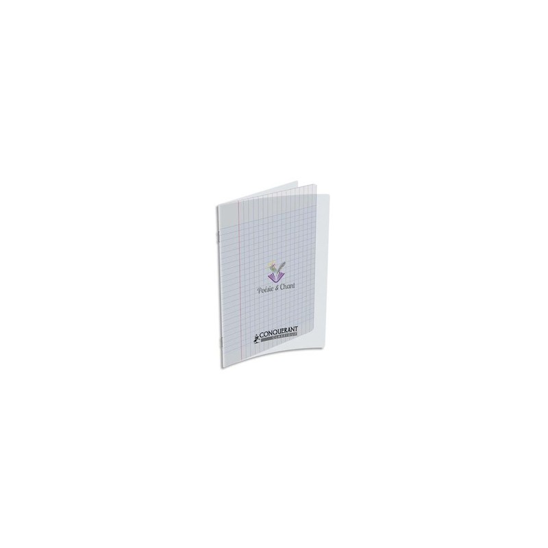 Cahier de poésie/chant 17x22 cm 48 pages blanches grands carreaux Seyès. PP incolore