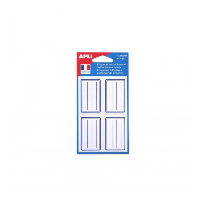 Etiquette scolaire lignée bleu 36x56mm, sachet de 20