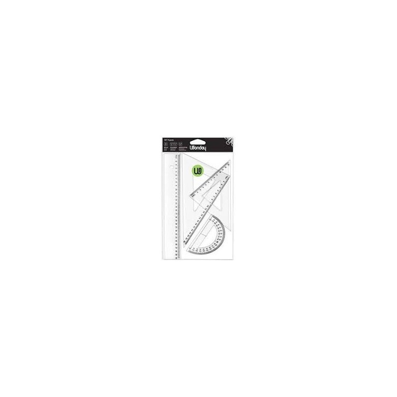 Kit de 4 traçage (1 Règle 30cm / 2 Equerres 60° 22cm et 45° 21cm / 1 Rapporteur 180° 12cm) plastique